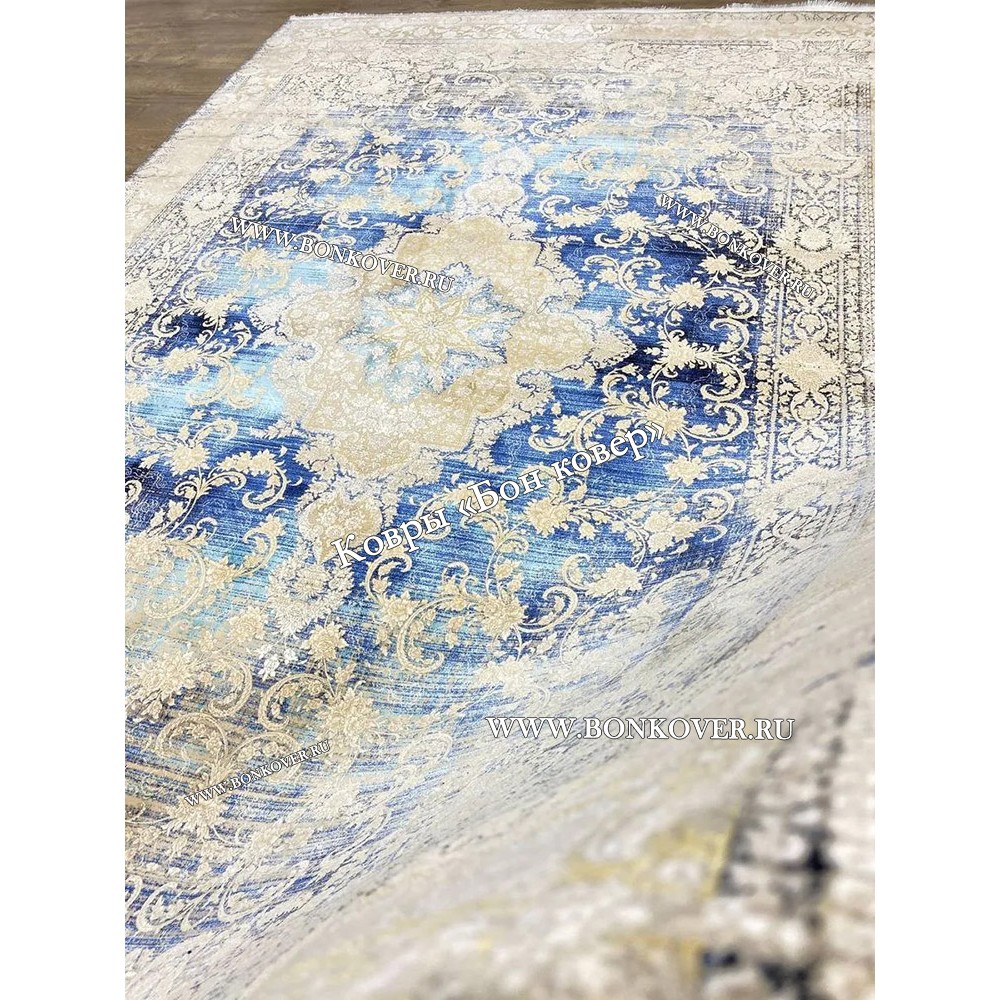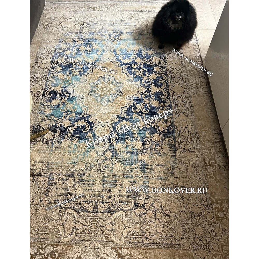 Долго искали смотрели на разных сайтах , в итоге ваш ковер приглянулся больше всего . Доставили в рулоне на следующий день , оплатили при получении . Идеальный вариант , цвет темно синий с переливом - рисунок очень выйгрышно смотрится !