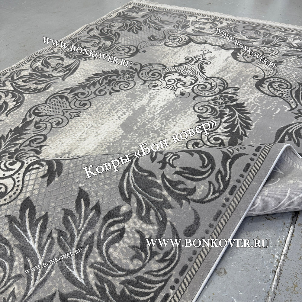 Красивый Ковер Для Гостиной Медальон Дизайн 30544 Серый наполняет интерьер комнаты теплом и уютом, гармонично сочетает в себе изящество и стиль. Он соткан из современных материалов, прочный и долговечный.